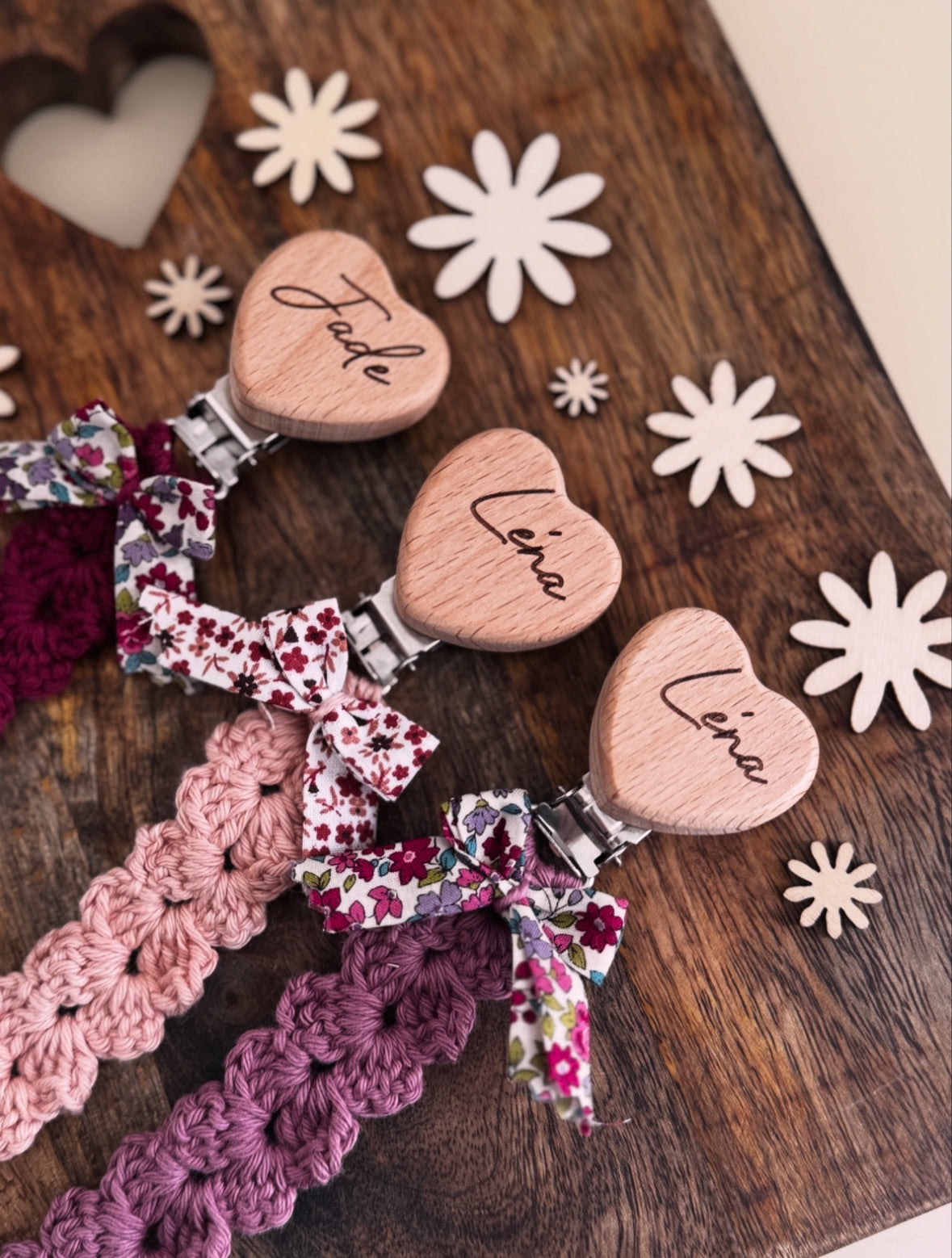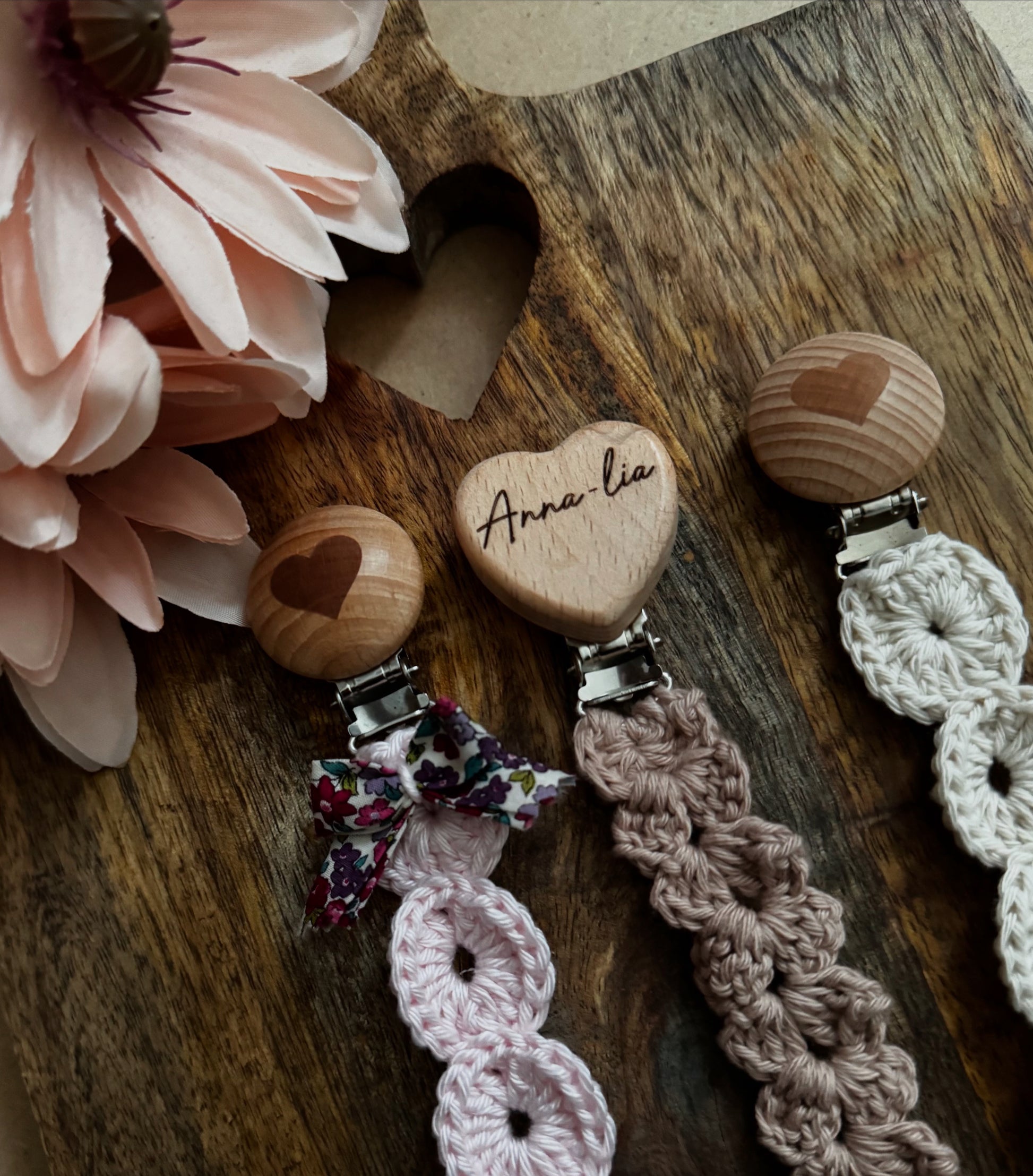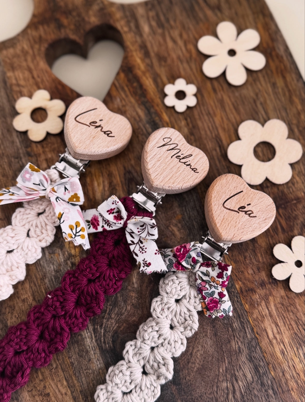 Cette adorable attache-tétines, confectionnée avec amour à la main. Coton Ricorumi, nœud Liberty, gravure personnalisée... Tous les ingrédients sont réunis pour faire de cet accessoire un incontournable pour votre bébé. Légère, douce et personnalisable, elle deviendra indispensable pour les parents.
